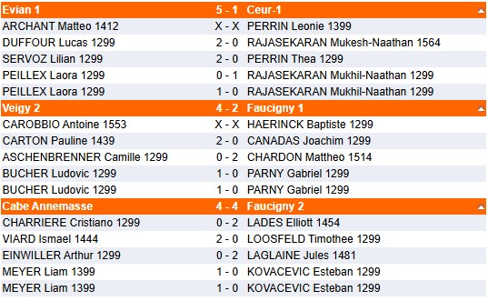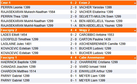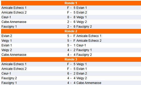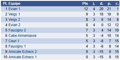 NB : Suite aux forfaits des équipes de Gex (Amicale Echecs), le match Evian 1 / Evian 2 a pu être avancé. Ces deux équipes ont donc un match d'avance