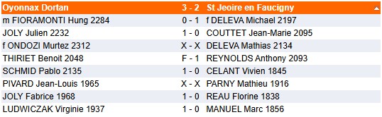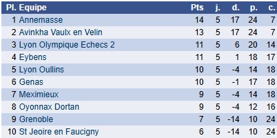 5ème ronde de cet Interclub N2 face à Oyonnax