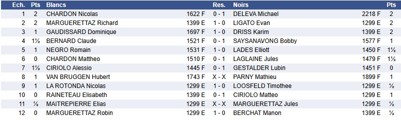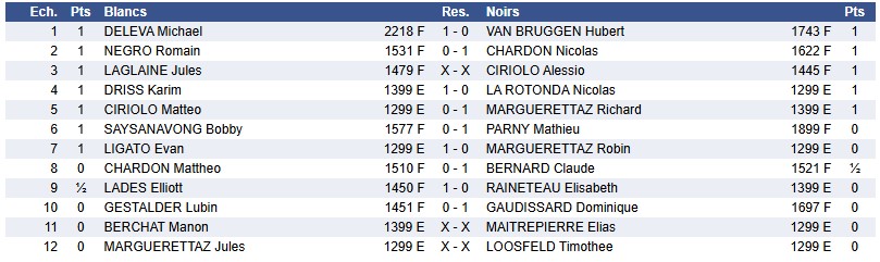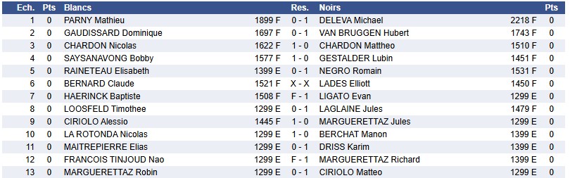 Mathieu et Hubert VB au coude à coude qui ne sont pas arrivés à se départager à la dernière ronde. 3ème partie nulle de suite pour ces deux joueurs